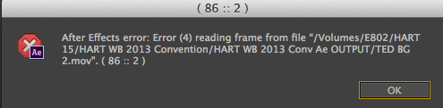 On Jun 18, 2013, at 11:41 AM, Jim Curtis wrote: I'm getting a massive number of ".Moov file is damaged" messages on opening one of my last Ae CS6 projects.